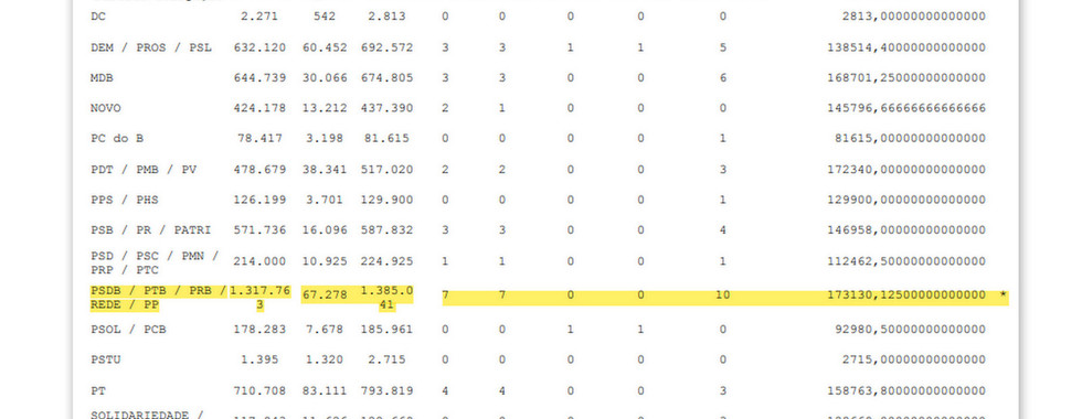 PSDB / PTB / PRB / REDE / PP - 7 cadeiras